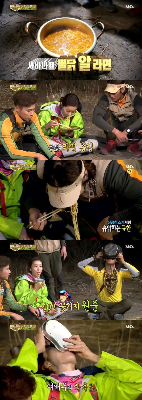이어 라면맛을 본 병만족은 라면 먹는데 집중했다. 정태우는 씹지도 않고 라면을 넘겼고 김원준은 냄비째로 라면을 먹었다.