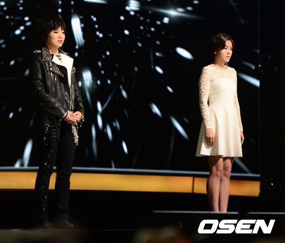18일 오후 서울 경희대 평화의 광장에서 진행된 엠넷 '슈퍼스타K5' TOP6 생방송 공연에서 김민지와 송희진이 멋진무대를 선보인 뒤 심사위원 평가를 기다리고 있다.