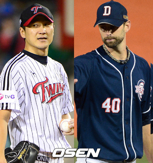 LG와 두산이 19일 잠실구장에서 열리는 '2013 한국야쿠르트 세븐 프로야구' 플레이오프 3차전 선발투수로 각각 신재웅(31)과 니퍼트(32)을 각각 예고했다. 신재웅이 예정된 로테이션이라면 니퍼트는 유희관과 저울질 끝에 선발로 낙점받았다.