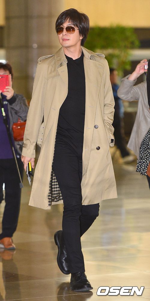 배용준이 19일 오전 일본 치바 마쿠하리 멧세 국제전시장에서 열리는 '한류 10주년 대상(Korean Entertainment 10th Anniversary Awards in Japan)'에 참석차 김포공항을 통해 출국하고 있다.