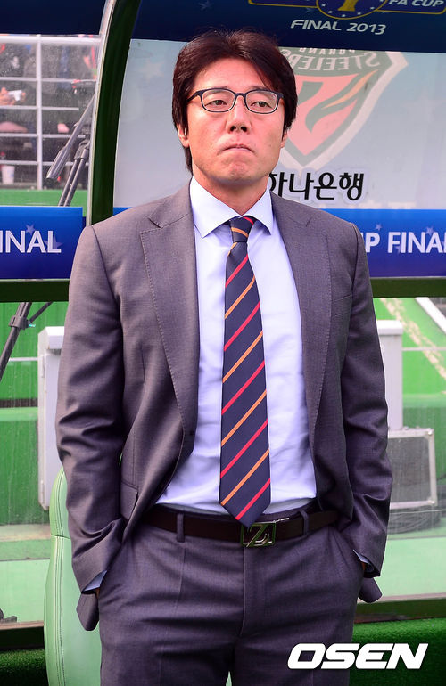 19일 오후 전주월드컵경기장에서 열린 '2013 하나은행 FA컵' 전북 현대와 포항 스틸러스의 경기 시작전 황선홍 감독이 벤치에 서 있다.