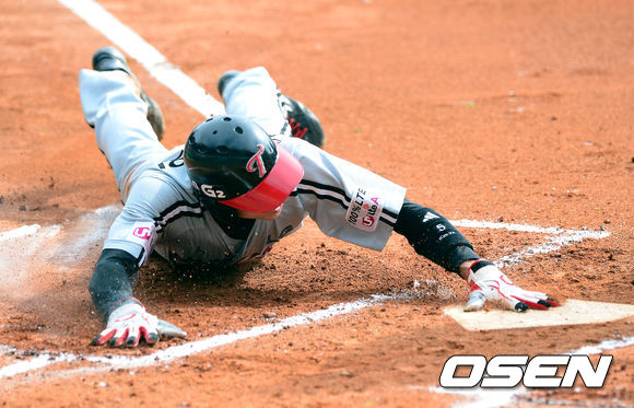 19일 오후 서울 잠실야구장에서 열린 '2013 한국야쿠르트 세븐 프로야구' 플레이오프 3차전 두산 베어스 대 LG 트윈스의 경기, 1회초 1사 2,3루에서 LG 김용의가 정성훈의 1루 땅볼에 홈에서 세이프되고 있다.