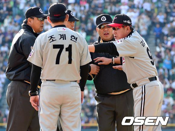 LG는 내야수비가 무너지며 3회만 3실책 하는 등 3실점하고 1-3으로 지고 있다. 선발 신재웅은 결국 2⅔이닝만 던지고 마운드를 내려갔다. 3실점 모두 비자책점이었다. LG로서는 초반 실책으로 경기 흐름을 내줬다.