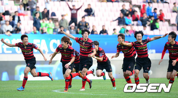 이날 승리로 포항은 FA컵 통산 4회 우승을 달성하며 전북, 수원, 전남(이상 3회 우승)을 물리치고 FA컵 최다 우승팀이 됐다. 지난해에도 경남을 물리치고 FA컵 우승컵을 들어 올렸던 포항은 대회 2연패를 달성하게 됐다. 포항은 우승 상금 2억 원과 함께 2014년도 아시아축구연맹(AFC) 챔피언스리그 진출권을 획득하게 됐다. / baik@osen.co.kr