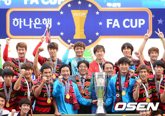 이날 승리로 포항은 FA컵 통산 4회 우승을 달성하며 전북, 수원, 전남(이상 3회 우승)을 물리치고 FA컵 최다 우승팀이 됐다. 지난해에도 경남을 물리치고 FA컵 우승컵을 들어 올렸던 포항은 대회 2연패를 달성하게 됐다. 포항은 우승 상금 2억 원과 함께 2014년도 아시아축구연맹(AFC) 챔피언스리그 진출권을 획득하게 됐다. / baik@osen.co.kr