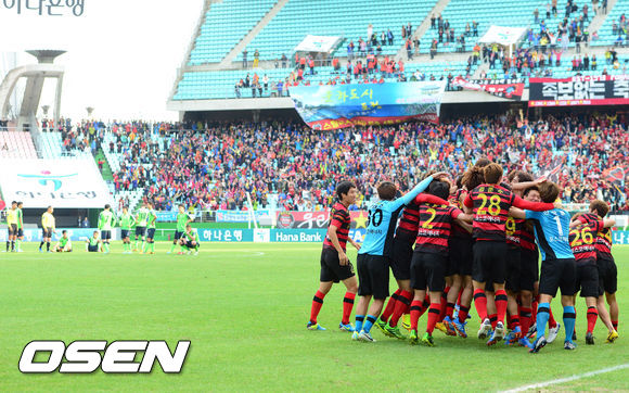 이날 승리로 포항은 FA컵 통산 4회 우승을 달성하며 전북, 수원, 전남(이상 3회 우승)을 물리치고 FA컵 최다 우승팀이 됐다. 지난해에도 경남을 물리치고 FA컵 우승컵을 들어 올렸던 포항은 대회 2연패를 달성하게 됐다. 포항은 우승 상금 2억 원과 함께 2014년도 아시아축구연맹(AFC) 챔피언스리그 진출권을 획득하게 됐다. / baik@osen.co.kr