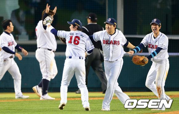 경기 종료 후 두산 선수들이 승리의 기쁨을 나누고 있다./sunday@osen.co.kr