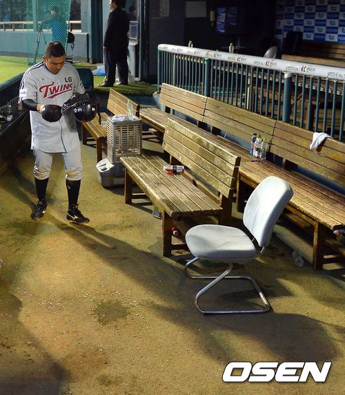 9회초 2사 2루에서 LG 이병규의 우전안타에 문선재가 두산 최재훈의 블로킹에 막혀 태그아웃당하며 경기가 종료되자 패배의 빌미를 제공한 윤요섭이 더그아웃을 빠져 나가고 있다./spjj@osen.co.kr
