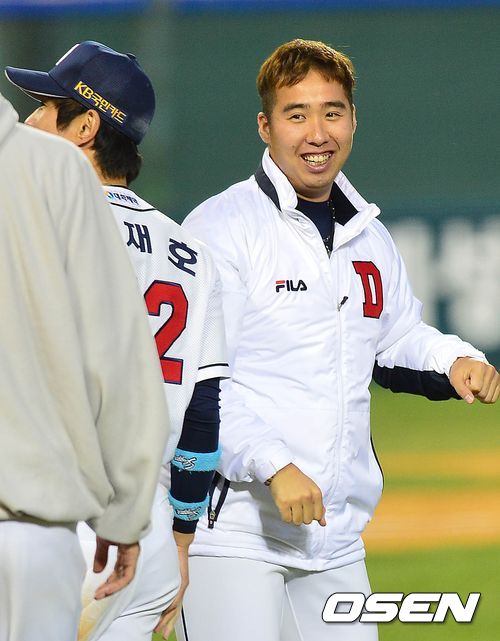 동료들과 인사를 나누며 미소짓는 유희관./dreamer@osen.co.kr