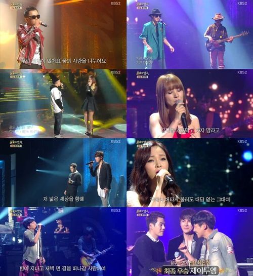 제이투엠은 19일 오후 방송된 KBS 2TV 예능프로그램 '불후의 명곡-전설을 노래하다'에서 최진희 특집의 최종 우승 영광을 안았다.