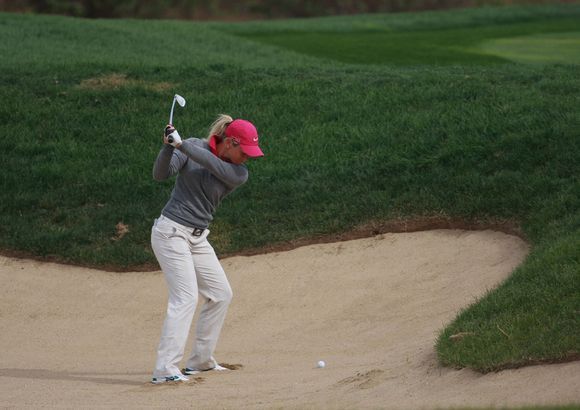 수잔 페테르센이 5번홀 벙커 탈출을 시도하고 있다.
