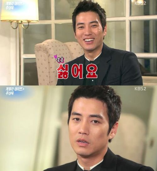 주상욱은 19일 오후 방송된 KBS 2TV '연예가중계'에서 야외버라이어티 예능에 대한 아쉬움을 토로한 뒤, "'진짜 사나이' 어떠냐"는 질문에 "싫다"고 단호히 답했다.
