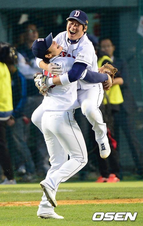 이어 민병헌은 “9회 2사에서 내 앞으로 타구가 올 것 같아 긴장했다. 앞서 어깨를 200번 정도 풀었던 것 같다”라며 웃은 뒤 “정작 끝났을 때는 상황을 제대로 파악을 못했던 것 같다. 갑자기 (이)원석이형이 달려들어 와락 안더라. 그래서 잠깐 당황하고 있었다”라고 또 한 번 웃었다.