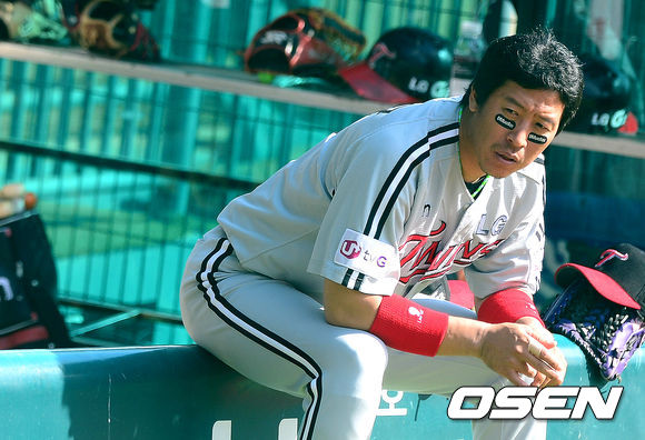 경기에 앞서 LG 이병규가 더그아웃에 앉아 생각에 잠겨 있다.