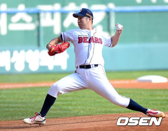 1회초 무사에서 두산 선발투수 유희관이 힘차게 공을 던지고 있다.