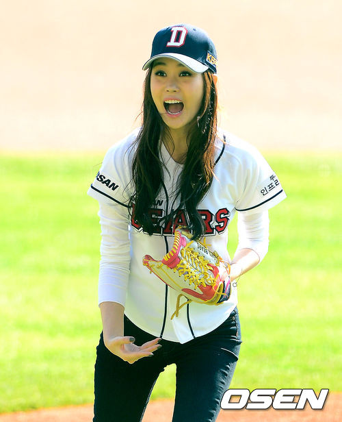 경기에 앞서 배우 이다해가 시구를 하고 있다.
