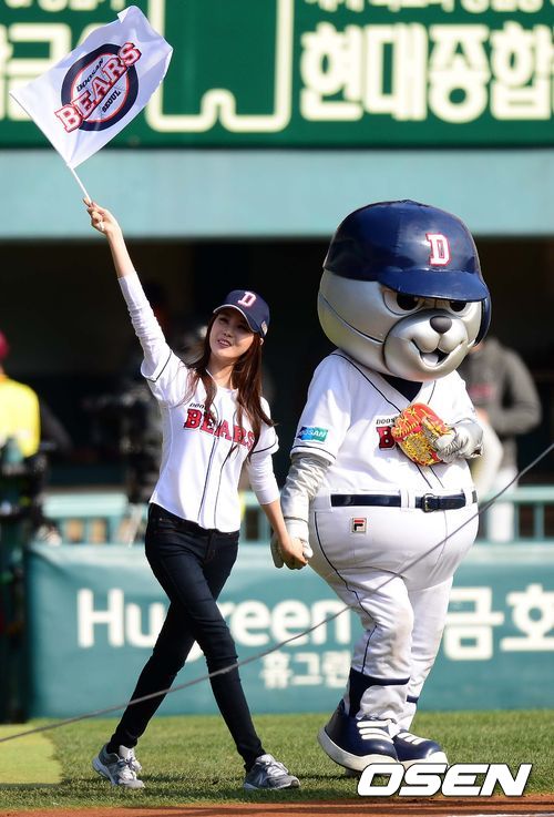 경기에 앞서 배우 이다해가 싲구전 인사를 하고 있다.