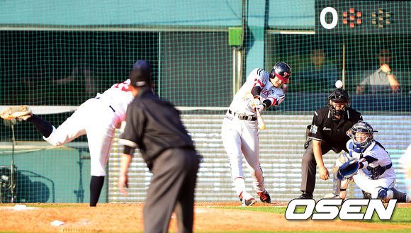 7회초 1사 2루에서 LG 박용택의 동점 적시 2루타를 날리고 있다.