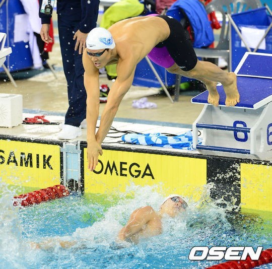 박태환은 20일 인천 문학 박태환 수영장에서 열린 2013 제94회 전국체육대회 수영 경영 남자 계영 400m 결승서 3분 31초 46으로 금메달을 목에 걸었다. 지난 19일 남자 자유형 400m서 우승을 차지한 박태환은 2관왕에 올랐다.