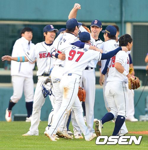 경기 종료 직후 두산 선수들이 환호하고 있다./dreamer@osen.co.kr