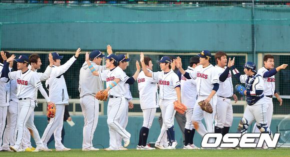 두산 선수들이 승리의 하이파이브를 나누고 있다./dreamer@osen.co.kr