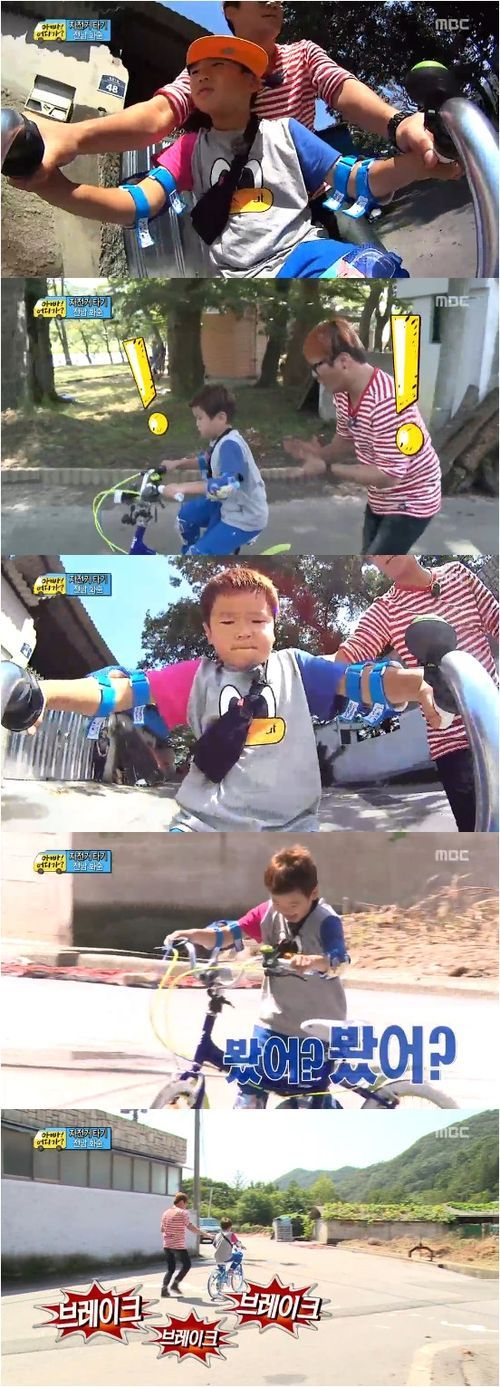 또한 윤후가 자전거를 타다가 넘어지자 “원래 다 넘어지는 거다”, “아빠도 아기 때 넘어졌다”고 격려했다. 윤후는 아빠의 격려에 힘입어 입을 꾹 다물고 자전거를 타기 시작했다.