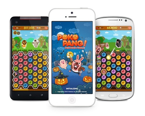 국내 게임 개발사 트리노드가 개발한 ‘라인 포코팡’은 1분의 제한시간 내에 한붓 그리기 방식으로 손을 떼지 않고 세 개 이상의 같은 색깔 블록을 지워 몬스터를 공격할 수 있는 액션 퍼즐 게임이다.
