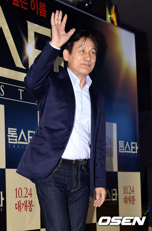 21일 오후 서울 자양동 롯데시네마 건대입구에서 열린 영화 '톱스타(박중훈 감독)' VIP시사회에서 안성기가 포토타임을 갖고 있다.