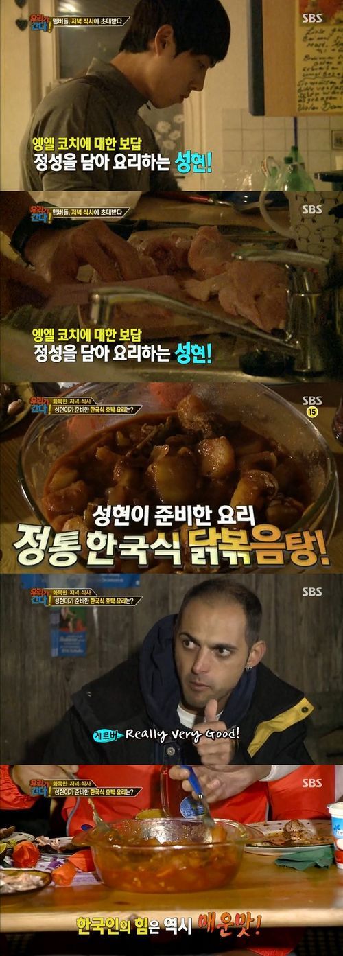 이들을 가르친 독일인 코치는 멤버들을 집으로 초대, 저녁식사를 대접했다. 이에 백성현은 코치에게 보답하기 위해 직접 맛깔스런 한국식 닭볶음탕을 만들었다.
