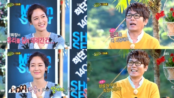 성유리는 "요리를 할 때 우리는 손도 못 데게 하신다. 우리는 소파에 앉아 신승훈 씨의 일본 콘서트 실황 영상을 본다"라고 폭로해 웃음을 자아냈다.