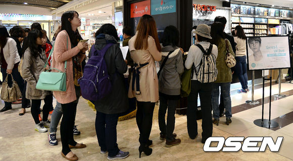 가수 신승훈이 4년 만에 발표한 앨범 '그레이트 웨이브(Great Wave)'가 발매된 23일 오전 서울 종로구 광화문 교보문고에서 선착순 판매되는 신승훈의 친필 사인 CD를 구매하기 위해 줄을서 기다리고 있다.