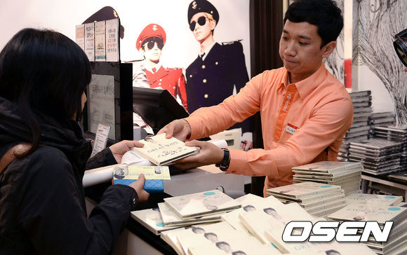 가수 신승훈이 4년 만에 발표한 앨범 '그레이트 웨이브(Great Wave)'가 발매된 23일 오전 서울 종로구 광화문 교보문고를 찾은 팬이 신승훈의 친필 사인 CD를 구매하고 있다.