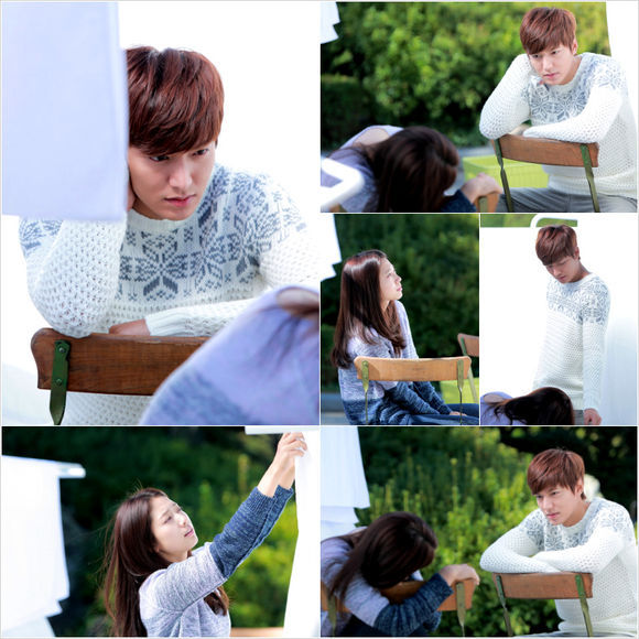 촬영이 시작되자 이민호와 박신혜는 흰 천을 사이에 두고 각각 상반된 표정으로 첫사랑의 느낌과도 같은 로맨틱한 장면을 연출했다. 이민호는 심장을 조이는 것 같은 뜨거운 눈빛을 발산했고, 박신혜는 사랑스럽고도 달달한 모습으로 싱그러운 매력을 표출했던 터. 특히 의자에 앉아서 졸고 있는 박신혜를 묵묵히 쳐다보고만 있는 이민호의 모습이 현장을 일순 숨죽이게 만들었다는 귀띔. 지켜보던 스태프들은 “눈빛만으로도 심장 박동수를 높이는 케미커플!”이라며 극찬을 보냈다.