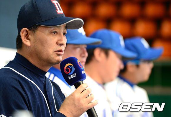 두산 김진욱 감독 이 출사표를 말하고 있다.