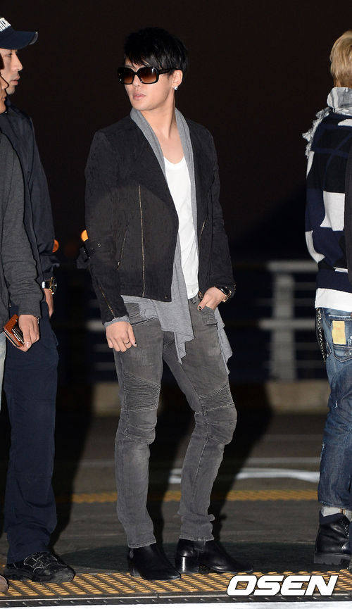 JYJ 김준수가 출국장으로 들어서고 있다.