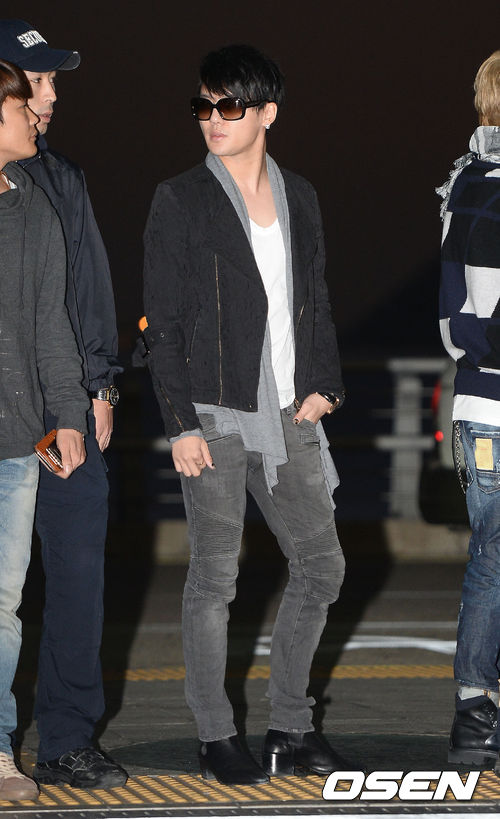 JYJ 김준수가 출국장으로 들어서고 있다.