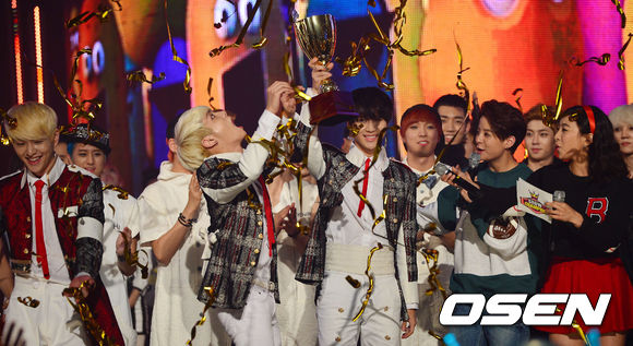 23일 오후 서울 마포구 상암동 누리꿈 스퀘어에서 진행된 MBC MUSIC '쇼 챔피언'에서 1위를 한 샤이니가 1위 컵을 들고 있다.