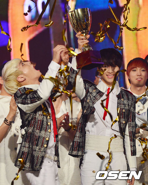 23일 오후 서울 마포구 상암동 누리꿈 스퀘어에서 진행된 MBC MUSIC '쇼 챔피언'에서 1위를 한 샤이니가 1위 트로피를 들고 있다.