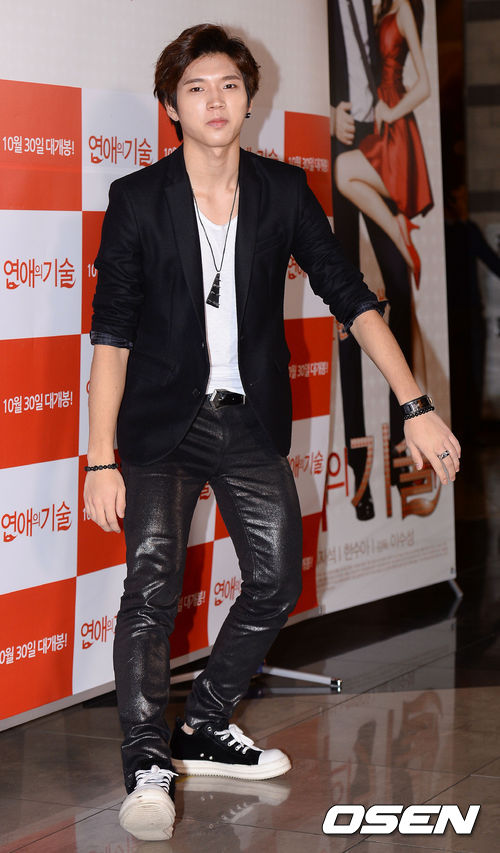 23일 오후 서울 건대 롯데시네마에서 진행된 영화 '연애의 기술' (이수성 감독) VIP시사회에 참석한 인피니트 멤버 우현이 포토월을 빠져나가고 있다.