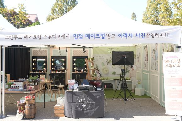‘스킨푸드 메이크업 스튜디오’는 면접 메이크업 컨설팅 및 이력서 사진 촬영 서비스를 제공한다. 캠퍼스 내 담당 부서에서 선착순 접수가 이루어지며, 참가 시 퀄리티 높은 이력서 사진을 촬영할 기회를 얻을 수 있다.