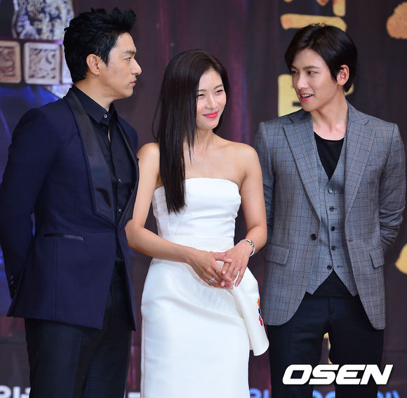 24일 오후 서울 용산구 그랜드하얏트서울 그랜드 볼룸에서 열린 MBC 월화 특별기획드라마 '기황후' 제작발표회에서 주진모 하지원 지창욱이 즐겁게 얘기를 나누고 있다.