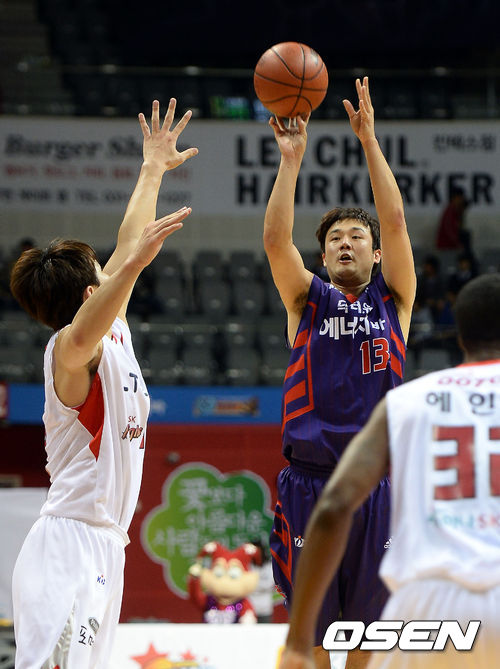 24일 오후 고양실내체육관에서 열린 '2013-2014 KB국민카드 프로농구' 고양 오리온스와 서울 SK의 경기 1쿼터 오리온스 김동욱이 점프슛을 시도하고 있다.