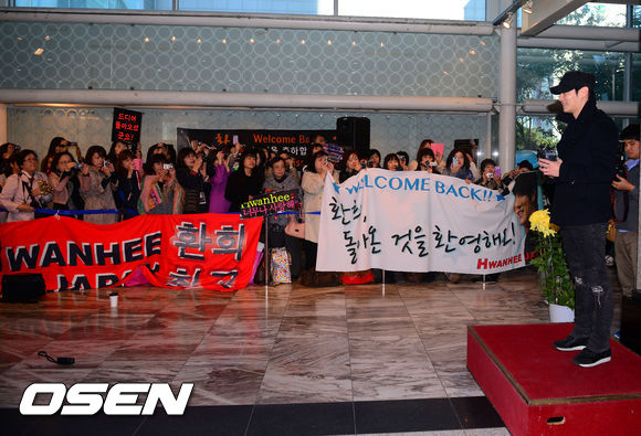 이날 현장에는 백여 명의 팬들이 '환희 돌아온 것을 환영해요', '환희 최고' 등의 플래카드 및 꽃 선물을 들고 소집해제 된 환희를 반겼다. 특히 상당수의 일본 팬들이 환희의 이름을 연호하며 현장에 자리해 더욱 눈길을 끌었다.