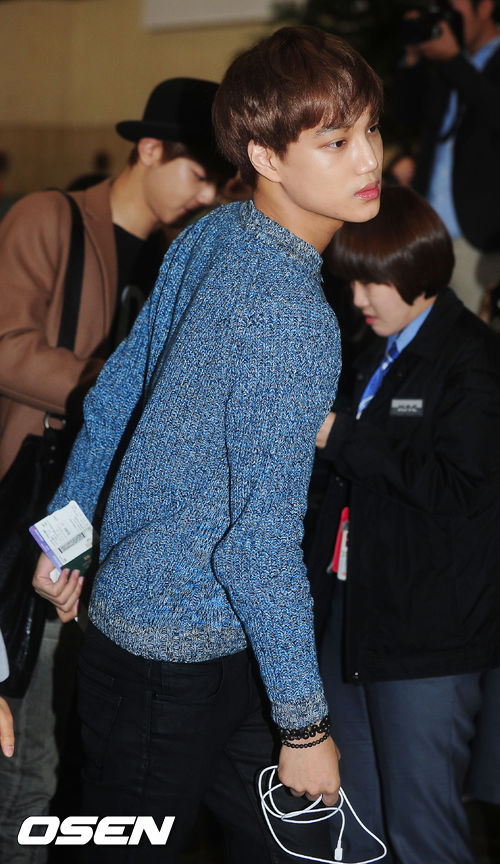 엑소의 카이가 출국장을 통과하고 있다.
