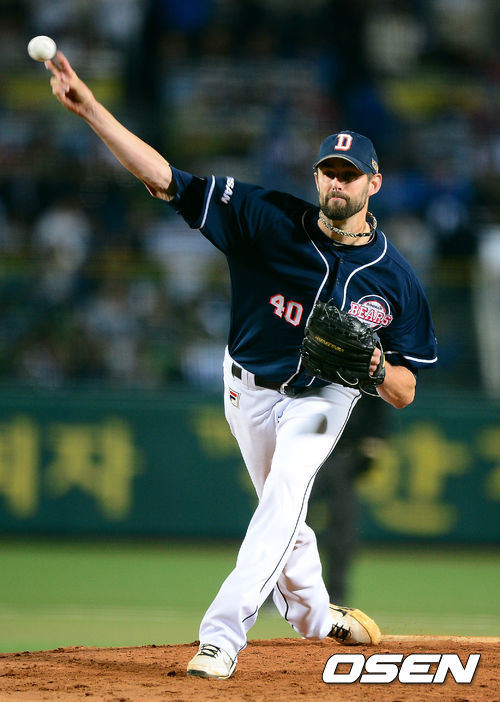 25일 오후 대구구장에서 열린 '2013 한국야쿠르트 세븐 프로야구' 한국시리즈 삼성 라이온즈와 두산 베어스의 2차전, 1회말 두산 니퍼트가 역투하고 있다.