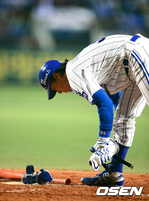 25일 오후 대구구장에서 열린 '2013 한국야쿠르트 세븐 프로야구' 한국시리즈 삼성 라이온즈와 두산 베어스의 2차전, 2회말 무사에서 삼성 이승엽이 볼넷으로 출루하고 있다.