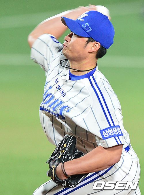 25일 오후 대구구장에서 열린 '2013 한국야쿠르트 세븐 프로야구' 한국시리즈 2차전 삼성 라이온즈와 두산 베어스의 경기, 9회초 두산 공격 1사 1루 상황 마운드에 오른 삼성 마무리투수 오승환이 힘차게 공을 뿌리고 있다.