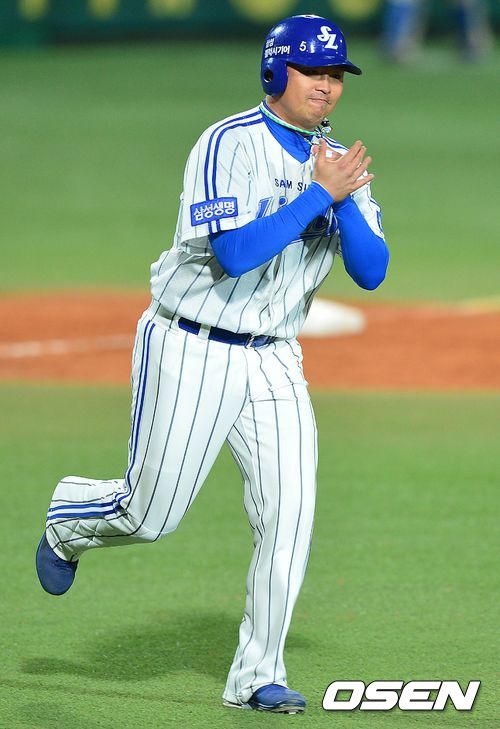 25일 오후 대구구장에서 열린 '2013 한국야쿠르트 세븐 프로야구' 한국시리즈 2차전 삼성 라이온즈와 두산 베어스의 경기, 연장 11회말 삼성 공격 무사 1루 상황 주자 진갑용을 대신해 박한이가 대주자로 나서고 있다.