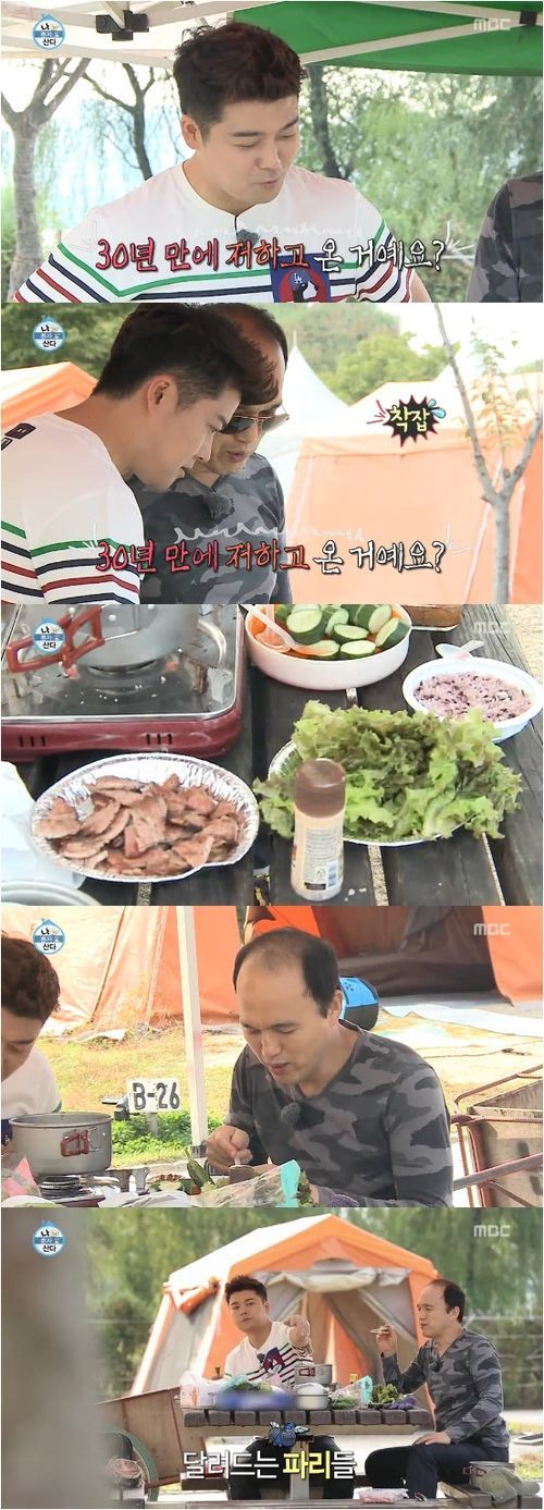 김광규와 전현무가 남자 둘이 떠난 캠핑에서 처량한 생고생기로 웃음을 유발했다.