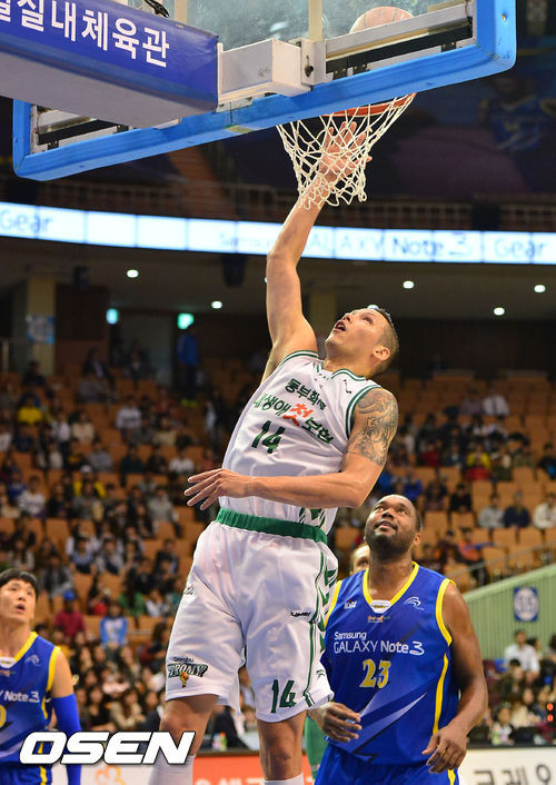 동부는 25일 원주종합체육관에서 벌어진 2013-2014시즌 KB국민카드 프로농구 1라운드서 부산 KT를 맞아 74-94로 완패를 당했다. 개막 후 3연승으로 치고 나갔던 동부는 같은 날 전자랜드에 덜미를 잡힌 모비스, LG(이상 4승 2패)와 함께 공동 3위로 내려앉았다.